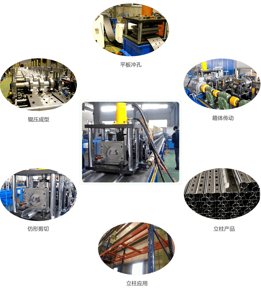 開卷→引料校平→平板沖孔→輥壓成型→仿形剪切→成品出料