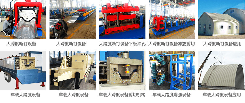 車載大跨度設(shè)備工藝流程: 開卷—導(dǎo)向進(jìn)料—輥壓成型—仿形切斷—托板出料—滾彎—安裝鎖合